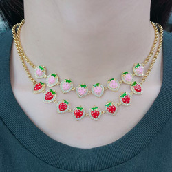 S11458 Chic 18K altın CZ açacağı emaye kiraz çilek meyve Charms bağlantı bilezik kolye kadın parti aksesuarları takı setleri