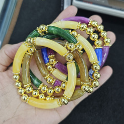 Bc1591 Phụ Kiện Của Phụ Nữ Hai Lớp Nguyên Liệu 4Mm 18K Điểm Vàng Bóng Đính Cườm CZ Micro Pave Ban Đầu Thư Đàn Hồi Vòng Đeo Tay