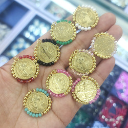 Js7376 Chic handmade trang sức Nguồn cung cấp tinh thể ngọc trai đính cườm 18K mạ vàng san benito abad ST Benedict huy chương Mặt dây chuyền quyến rũ