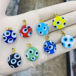 Jf7349 Phổ Biến Nhiều Màu Cầu Vồng Mạ Vàng Mắt Ác Đồng Xu Amulet Men Đèn Thủy Tinh Bảo Vệ May Mắn Zircon Kitô Giáo