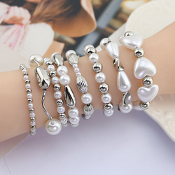 Bc1534 Nhỏ 18K Vàng Mạ Bóng Bead Và Ngọc Trai Đính Cườm Hạt Vòng Đeo Tay Với CZ Pave Puffy Trái Tim Sao Sao Biển Quyến Rũ Cho Phụ Nữ