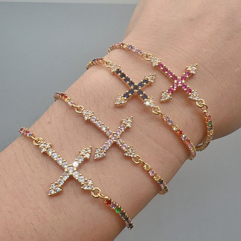 Bc1535 18K Vàng Mạ Đa Màu CZ Kim Cương Zircon Cubic Zirconia Chéo Tennis Bolo Chuỗi Vòng Đeo Tay Cho Phụ Nữ