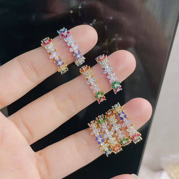 Rm1703 Chic thanh nhã 18K vàng bạc mạ đồng thau cầu vồng CZ Pave hoa hoa phong cách điều chỉnh Nhẫn